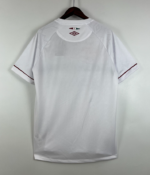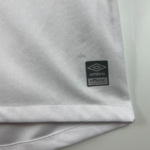 A gola é V na cor branca e traz detalhe frontal em grená, enquanto as mangas e os punhos são brancos e no último há um sutil friso grená.
