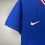 A nova camisa titular da França para a temporada traz a volta do azul royal como cor predominante, se diferenciando so últimos modelos da marca, que apresentavam o marinho. A gola traz o novo formato V exclusivo da marca e é tricolor, nas cores da bandeira nacional. O vermelho aparece na parte de trás dos punhos e em detalhes nas dorsais. Dentro da gola é escrita a frase “Nos différences nous unissent” (Nossas diferenças nos unem), assim como no uniforme anterior.