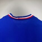 A Nike estampa o Swoosh em branco, no lado direito do peito, enquanto o Galo tradicional da Federação Francesa é colocado no lado esquerdo, em sua versão padrão, num tamanho maior, justamente para homenagear os anos 80.