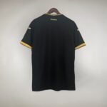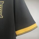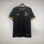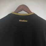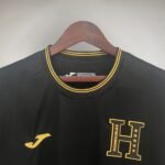A quarta mais nova camisa da seleção Honduras é preta e traz gola redonda na mesma cor, com duas listras douradas. Os punhos são pretos e trazem detalhes dourados.