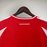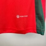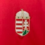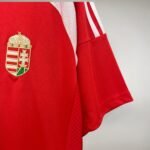 O escudo da Federação Húngara é colocado no lado direito do peito, em sua versão padrão, enquanto o brasão de armas da Hungria vai no lado esquerdo. Já o novo logo grande da Adidas vai no centro, em branco.