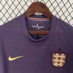A Nike estampa o Swoosh em dourado, no lado direito do peito, enquanto os Three Lions são colocados no lado esquerdo, numa versão roxa e dourada.