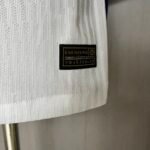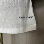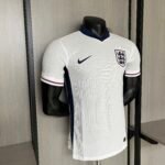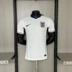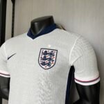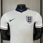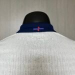 A mais recente camisa titular da Seleção da Inglaterra é uma elegante peça branca, complementada por uma gola “semi-polo” em azul marinho, adotando um estilo que também estará presente nas camisas da Seleção Brasileira. Os punhos, em branco, apresentam frisos em azul marinho e vermelho, proporcionando um toque de sofisticação. Detalhes em azul marinho percorrem a parte inferior da manga e as laterais da camisa, agregando um charme adicional ao design.