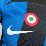 Diferentemente do ano passado, quando o escudo da Inter foi aplicado em dourado, dessa vez o símbolo ganha suas cores originais, com o monograma em branco, acima, é aplicada uma estrela. O logo da  Nike é aplicado em branco, assim como o patrocínio máster da Digitalbits, que substitui a Socios.com.
