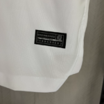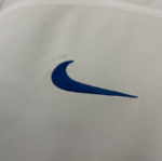 O branco volta a aparecer nos punhos e na gola, que tem formato V neste modelo, trazendo no interior as bandeiras de Milão e da Inter.