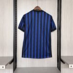 A nova camisa titular da Inter de Milão traz as tradicionais listras verticais em preto e azul, no entanto, o destaque fica por conta de como elas foram trabalhadas, já que formam de maneira sutil e quase invisível, a palavra “INTER”. A proposta visual foi desenvolvida para conectar passado e presente, valorizando a identidade histórica do clube ao mesmo tempo em que dialoga com uma nova geração de torcedores ao redor do mundo.
