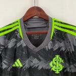 Segundo a Adidas, o manto é um marco de esperança por um lugar mais sustentável, que pensa no futuro e é inspirado nas iniciativas de sustentabilidade do clube gaúcho, reconhecido por ser a primeira equipe no Brasil com o Certificado de Gestão de Resíduos. A gola é V na cor cinza, com detalhesem verde nas laterais, e a cor também é vista nas três listras, que percorrem os ombros, além de recortes nas laterais e na barra.