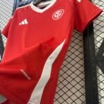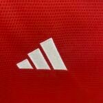 O escudo ganha uma versão retrô com a versão usada nos anos 70, enquanto no lado direito, o logo da Adidas ganha o lado direito em branco, assim como as três listras nos ombros. Nas laterais, os recortes são brancos, enquanto nas costas, na nuca, o ano “1975” é aplicado.