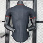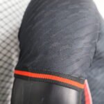 A envolvente camisa conceito do Japão para a temporada 23/24 destaca-se com um fundo preto acinzentado, evocando uma elegância sutil. Os vivos tons de vermelho nas três linhas dos ombros e nas listras laterais adicionam dinamismo à peça. O distintivo Woosh da Adidas, em branco, proporciona um contraste marcante.