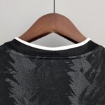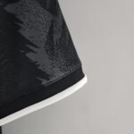 A nova camisa reserva da Juventus é predominantemente preta e traz grafismos abstratos formando listras verticais texturizadas em “anthracite”, uma espécie de cinza bem escuro. Segundo o clube, o manto celebra os jogos noturnos na Allianz Arena, que já foi homenageada no kit titular, e as listras estilizadas fazem referência ao DNA da Vecchia Signora.