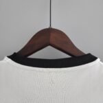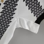 A Adidas estampa seu logo em preto no lado direito do peito, enquanto o escudo da Juventus é colocado no lado esquerdo, na mesma cor, com as três estrelas no topo.