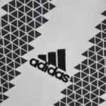 A nova camisa titular da Juventus traz as tradicionais listras verticais pretas sobre a base branca, no entanto, desta vez a Adidas inova mais uma vez, criando listras serrilhadas, que segundo a fornecedora, são formadas por triângulos “recodificados a estrela”, como um símbolo mágico, representando a magia do Allianz Stadium.