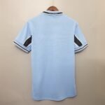 A camisa da Lazio na temporada 1999/2000, modelo Home, destacou-se como um dos mantos mais emblemáticos da história do clube, marcado pela conquista do Scudetto. Predominantemente celeste, trouxe um design clássico da Puma, com gola polo branca acompanhada de detalhes em preto, criando contraste elegante e imponente. O escudo da Lazio apareceu bordado à esquerda do peito, sobrevoado pela águia dourada, enquanto o patrocínio da Cirio, em branco dentro de uma caixa azul, reforçou a identidade visual da época.