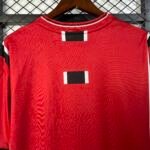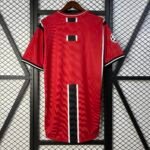 A icônica camisa do Mallorca na temporada 2001/02, modelo Home, apresentou um design vibrante e marcante, refletindo a identidade tradicional do clube. Predominantemente vermelha, cor símbolo da equipe, destacou-se pelos detalhes em preto presentes na gola, nas mangas e nas laterais, que adicionaram contraste e imponência ao uniforme. A gola redonda com acabamento em preto reforçou a modernidade da peça, enquanto o escudo do Mallorca bordado e o logo da Kelme estamparam a parte frontal com elegância. Um uniforme que sintetizou paixão, força e tradição, tornando-se um dos mais lembrados pelos torcedores baleares do início dos anos 2000.