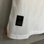 O grande destaque do kit fica por conta da aplicação do escudo em linhas douradas e um estilo 3D, que será visto no modelo “authentic”, o estilo metalizado/dourado também é visto no logo da PUMA e patrocínio máster. A cor dourada também está em debrums nas costuras laterais inferiores e nos logos da fornecedora nos ombros.