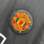 O distintivo Woosh da Nike se destaca em branco, enquanto o patrocínio da AIG ocupa o centro da camisa. O escudo do time mantém a tradição, sendo bordado com a intensidade característica do vermelho associado aos “Red Devils”. Na parte da nuca, um detalhe intrigante: um demônio segurando um tridente, símbolo do time e sua torcida, conhecidos carinhosamente por esse nome. Essa camisa não apenas representa um momento específico na história do clube, mas também incorpora elementos simbólicos que ressoam com a paixão e a identidade única dos torcedores do Manchester United.