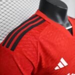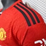 A camisa titular do Manchester United para a temporada, segundo o próprio time, homenageia a icônica rosa vermelha da cidade (Lancashire) e se inspira na ponte sobre o rio Irwell, que conecta Manchester e Salford, “um símbolo da força da cidade e seu profundo impacto no mundo durante a revolução industrial”.