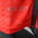 Ela é vermelha e tem como destaque um padrão gráfico no corpo com diversos riscos que formam rosas. O preto é a cor secundária, ao invés do branco, e é visto na gola junto à frisos em branco e vermelho, além das três listras que percorrem os ombros e faixas laterais, que se juntam na barra traseira e dorsais.