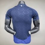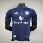 A nova camisa reserva do Manchester United traz a base em azul escuro, onde são vistos diversos “M”s que unidos pelas pontas, formam diversas “estrelas” e são replicadas ao longo de todo o corpo do manto.