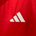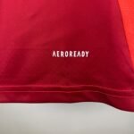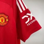 A camisa titular do Manchester United para a temporada é baseada no template Tiro24 da marca alemã e traz no corpo um gradiente em tons de vermelho, chegando a um tom quase vinho na barra. Já os arcos laterais são num tom mais claro, parecendo até laranja pelas imagens. A gola traz nuca branca com uma faixa vermelha, enquanto as três listras nas mangas são apenas brancas. O preto não aparece no modelo.