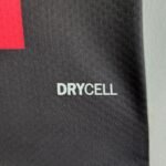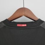 O escudo do Milan é aplicado no lado esquerdo, dentro de uma faixa preta, enquanto no lado direito, o logo da PUMA é aplicado em branco, cor também vista no patrocínio máster que no modelo masculino é da Emirates, e no feminino, do Banco BPM, e também no de manga.
