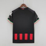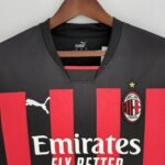 A camisa titular do AC Milan é predominante preta e traz na região do corpo do manto quatro listras verticais vermelhas que aparecem blocadas, iniciando na região do escudo e terminando um pouco antes da barra.