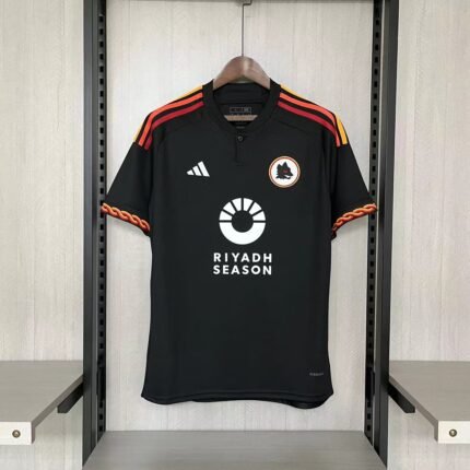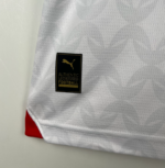 O escudo do Milan é aplicado no lado esquerdo do peito, em uma versão branca e prata, enquanto no lado direito, o logo da PUMA é aplicado em prata, cor também vista no patrocínio máster que no modelo masculino é da Emirates.