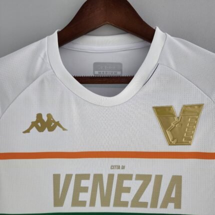 Com o branco como predominante, o manto tem como destaque uma faixa rubro-negro vertical no lado esquerdo do peito e um padrão gráfico no corpo formado a partir do escudo do clube estilizado, em cinza. A gola redonda é branca, assim como os punhos.