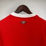 Nas costas, as listras aparecem apenas na parte inferior, sendo grande parte do kit totalmente vermelho. Já na nuca, outro selo especial lembra dos 125 anos do clube, que serão completados em dezembro de 2024.