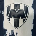 A camisa titular do Rayados para Mundial de Clubes de 2025 apresenta uma base azul marinho com duas listras brancas “pinceladas” no corpo, com boxes em azul marinho na área nobre e também nas costas. A gola tem formato pólo e é azul marinho, enquanto os punhos são largos e listrados nas duas cores. Na nuca vai um detalhes com as cores da bandeira mexicana. O escudo do Monterrey atual vai no lado esquerdo do peito, enquanto o felino vai no lado direito, ambos quase nos ombros.