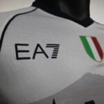 O manto reserva traz a base branca com uma imagem do Vesúvio em Nápoles em marca d’água na região do corpo. A gola é V em azul marinho, cor que também aparece no recorte nas mangas e aplicação do logo da EA7 e patrocínios.