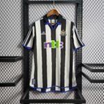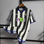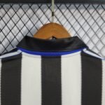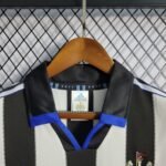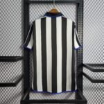 A icônica camisa do Newcastle United na temporada 2000/01, modelo Home, trouxe um design clássico e imponente, fiel à tradição do clube. Predominantemente branca, destacou-se pelas listras verticais pretas que percorriam toda a frente do uniforme, criando um contraste marcante e elegante. A gola redonda com detalhes pretos adicionou sofisticação, enquanto o escudo do Newcastle bordado e o logo da Adidas reforçaram a identidade e a qualidade da peça. Um uniforme que sintetizou tradição, modernidade e elegância, consolidando-se como um dos modelos mais memoráveis da história recente dos Magpies.