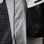 A nova camisa titular apresenta o tradicional visual listrado vertical em preto e branco, agora com a inclusão sutil do xadrez de pastor como base do design. A gola redonda tem a parte frontal seguindo o padrão listrado, e a nuca preta com frisos azuis.