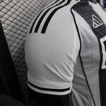 O escudo do clube está presente no peito, ao lado do logotipo preto da adidas. Um toque especial fica por conta da inscrição “Howay the Lads” na nuca, grito de guerra icônico da torcida que ecoa pelas arquibancadas do St. James’ Park.