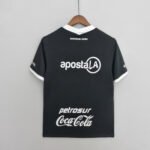 Com a base preta, a camisa traz uma faixa diagonal branca, ao invés da tradicional faixa horizontal comumente vista no Decano.