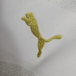O escudo está no lado esquerdo do peito, enquanto os logos da PUMA são aplicados em dourado. O patrocínio máster da “CMA CGM”, que substituirá a Cazoo em azul.