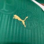 A PUMA estampa o felino em dourado, no lado direito do peito, mesma cor do patrocinador, enquanto o escudo do Palmeiras é colocado no lado esquerdo, em sua versão atual padrão.