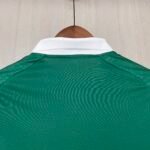 A camisa titular do Palmeiras para 2024 traz um design clássico, com o verde como predominante e gola pólo e punhos na cor branca.