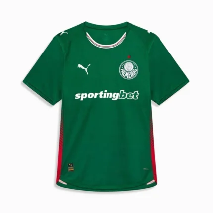 A Camisa Palmeiras Home 26/27 mantém o verde icônico como protagonista, reforçando a essência do clube e sua forte ligação com a torcida. O escudo do Sociedade Esportiva Palmeiras aparece aplicado no peito com acabamento premium, transmitindo força, respeito e tradição.