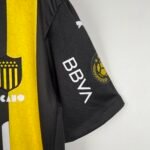 A camisa titular traz seu tradicional estilo com listras verticais em amarelo e preto, sendo desta vez a segunda, a cor predominante, já que aparece também nas mangas e nas laterais do kit, além da gola V.