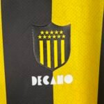 O escudo é aplicado no lado esquerdo do peito e o apelido “Decano” é aplicado em branco logo abaixo. No lado direito, o logo da PUMA ganha o branco, cor também aplicada nos patrocinadores.