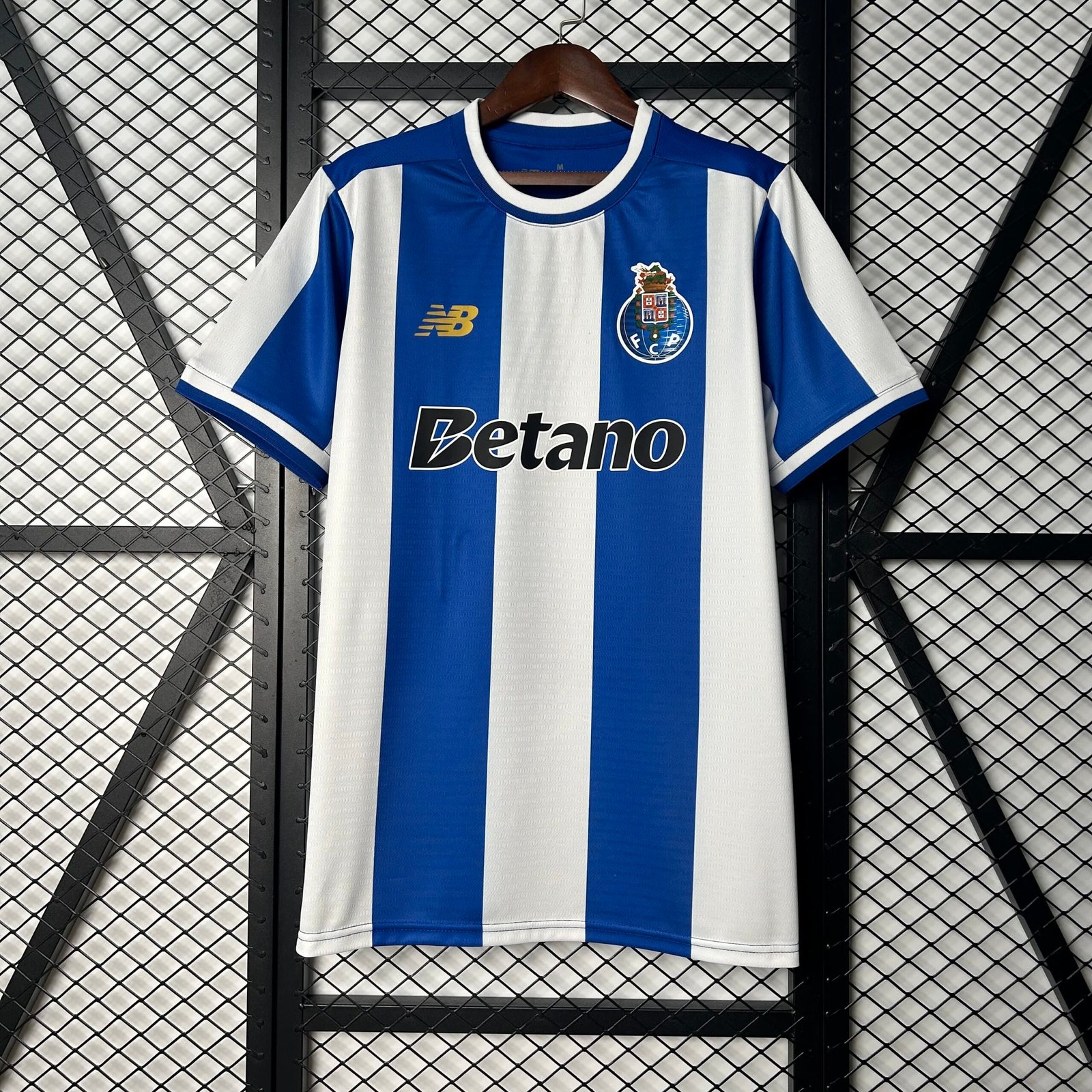 O escudo do Porto está no lado esquerdo do peito, enquanto o logo da New Balance aparece no lado direito em dourado.