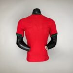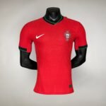 A nova camisa titular de Portugal para a temporada presta homenagem à bandeira portuguesa e à criatividade cultural do país, que inspira a forte história do futebol português. Predominantemente vermelha, como tradicional, ela traz como destaque a nova gola da marca, em preto, com contorno verde, mesmo padrão visto nos punhos.