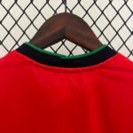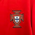 No interior da gola, é delicadamente escrito “Portugal” em uma fonte elegante, conectando a orgulhosa herança representada pelo emblema da seleção a um futuro emocionante compartilhado por atletas e fãs. A Nike estampa seu icônico Swoosh em branco no lado direito do peito, enquanto o logo da Federação Portuguesa é posicionado no lado esquerdo, em sua versão padrão, completando um design que celebra a identidade e a história do futebol português.