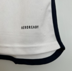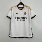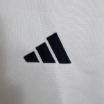 O escudo do Real Madrid ganha o lado esquerdo do peito, enquanto o novo logo da Adidas aparece no lado direito em azul marinho, enquanto o patrocinador recebe a mesma cor, que também é vista na barra e em painéis e faixas laterais do kit.
