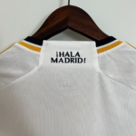 O grande destaque fica por conta da frase “¡Hala Madrid!” aplicada em marinho na nuca, cor que também será usada nos nomes e numeração dos jogadores.