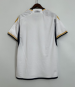 A nova camisa titular do Real Madrid é branca e traz uma gola que vai agradar muito mais Toni Kroos do que a anterior, com corte em V e frisos em azul marinho, branco e dourado, padrão que também vai aparecer nos punhos.