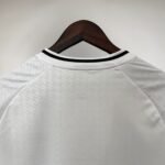 O escudo do Real Madrid ganha o lado esquerdo do peito, enquanto o novo logo da Adidas aparece no lado direito em preto, cor também vista no patrocínio master da Emirates, no master e da HP na manga.