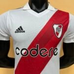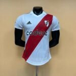 A camisa titular do River Plate traz o tradicional design branco, com a faixa transversal vermelha no corpo. Segundo o time, ela mostra aplicação moderna alcançando um design original que combina passado, presente e futuro.