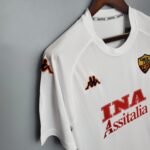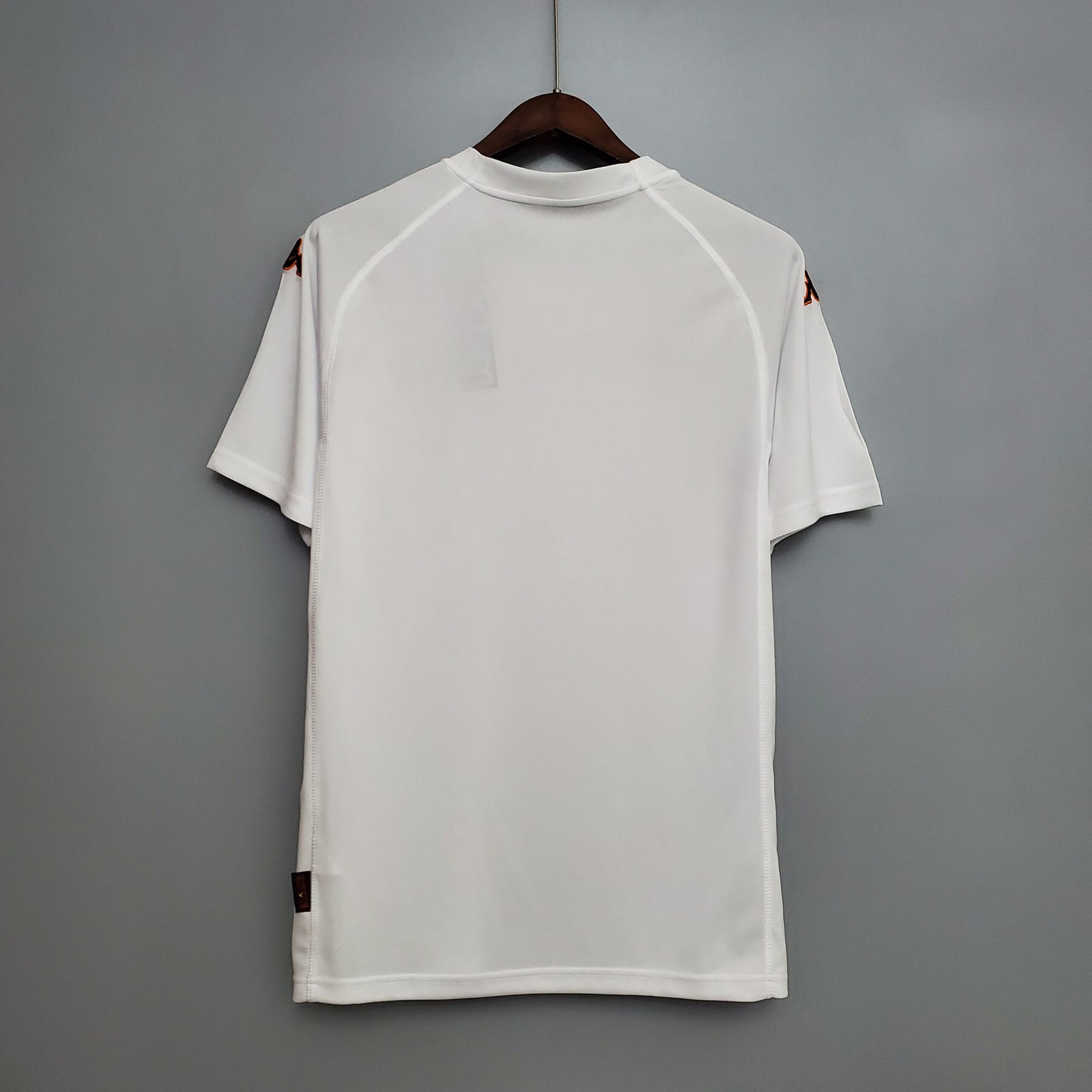 A icônica camisa reserva da AS Roma na temporada 2000/2001 trouxe um design ousado e marcante, totalmente alinhado ao espírito inovador dos anos 2000. Predominantemente amarela com detalhes em vermelho e laranja, o uniforme se destacou pelo padrão gráfico em relevo no tecido, que conferiu profundidade e modernidade ao visual. A gola clássica, discreta e elegante, complementou o design arrojado, enquanto o escudo da AS Roma bordado e o logo da Nike reforçaram a sofisticação da peça. Um uniforme que sintetizou tradição e inovação, tornando-se uma das camisas mais memoráveis da história do clube italiano.